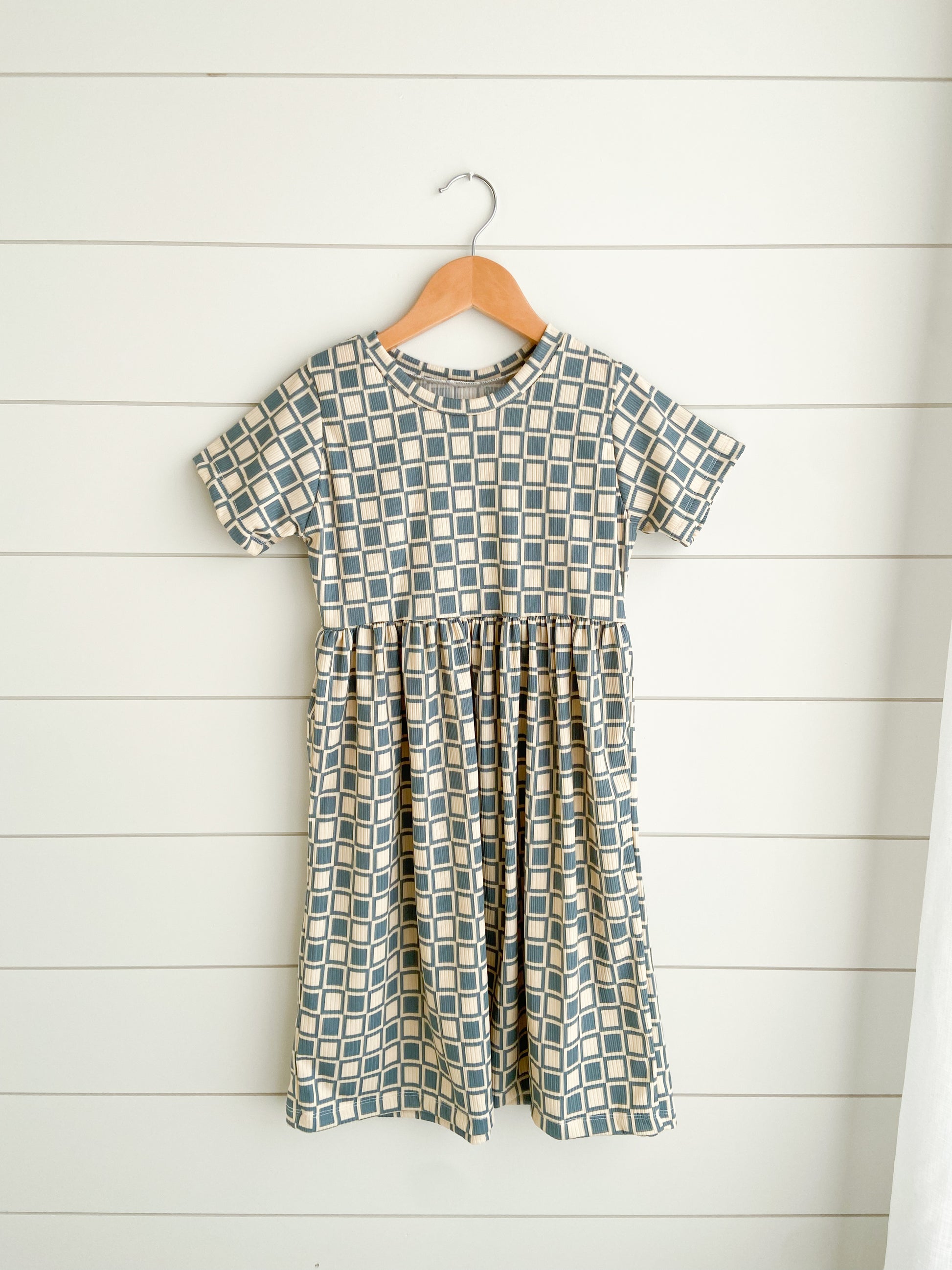 Dusty Blue Checkered Babydoll Dress